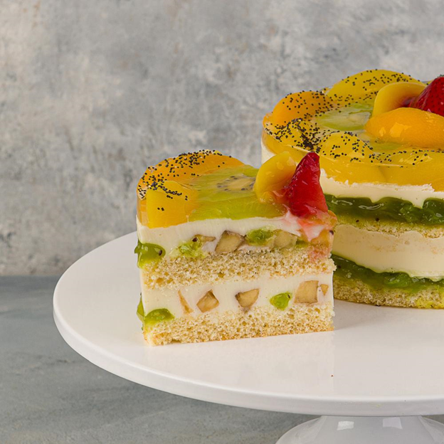 бисквитный. Самый популярный тип десерта из нежных, тающих во рту коржей. Основа разделена прослойками желе, сырного крема, вареной сгущенки, йогурта, свежих или желированных фруктов;
