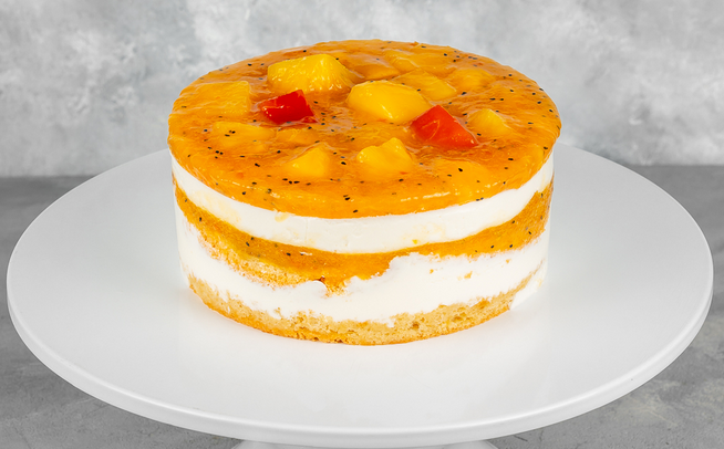 «Манго-манго» - кондитерское изделие, которое каждым своим кусочком способно унести вас на побережье океана, где благоухают тропические цветы и каждая минута дарит самое настоящее райское наслаждение. Тандем из самых сочных тропических фруктов -манго и маракуйя – заряжает энергией солнца и оптимизмом каждого попробовавшего этот невероятный десерт. Утонченный, пикантный бисквит с легкой кислинкой на основе миндальной муки и лимонной цедры в сочетании с кремом из творожного сыра прекрасно сочетаются с главными героями этого кондитерского изделия, не перетягивая «одеяло» на себя.