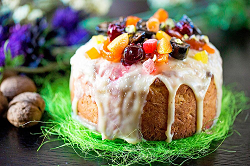 - Пасхальная классика – кулич. Чтобы добавить вкуса и оригинальности этому сдобному изделию, добавьте в него различные сухофрукты, орехи или цукаты. Аромат кондитерскому изделию можно придать при помощи различных специй и пряностей: имбирь, корица, ванилин. Насыщенный вкус и изюминку вашему пасхальному кондитерскому изделию придаст небольшое количество цедры лимона или апельсина.