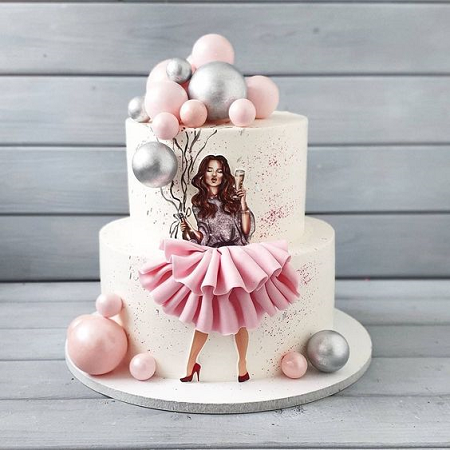 Двухъярусный десерт – превосходный вариант для празднования совершеннолетия в большой компании. Не забудьте про декор – кондитерское изделие ни в коем случае не должно получиться скучным!