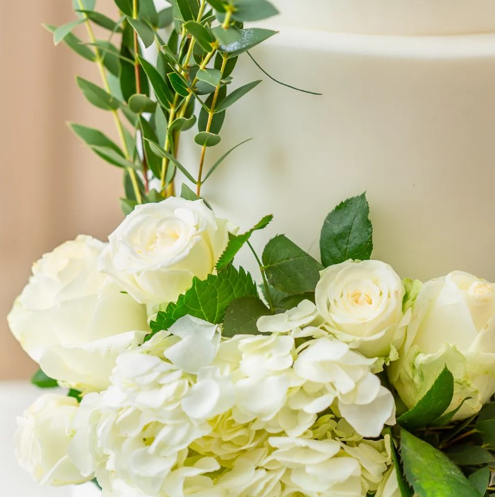 Тема экологии распространилась и на дизайн свадебных тортов 2024. Вместо розочек из масляного крема украшением угощения служат живые цветы и зеленые растения. Пусть декор и несъедобный, но смотрится необычно и по-современному. Среди цветов по украшению лидируют чайные розы, орхидеи, ромашки и лилии. Для зеленого декора кондитеры берут лаванду, мелиссу, оливковые ветви и листья эвкалипта.