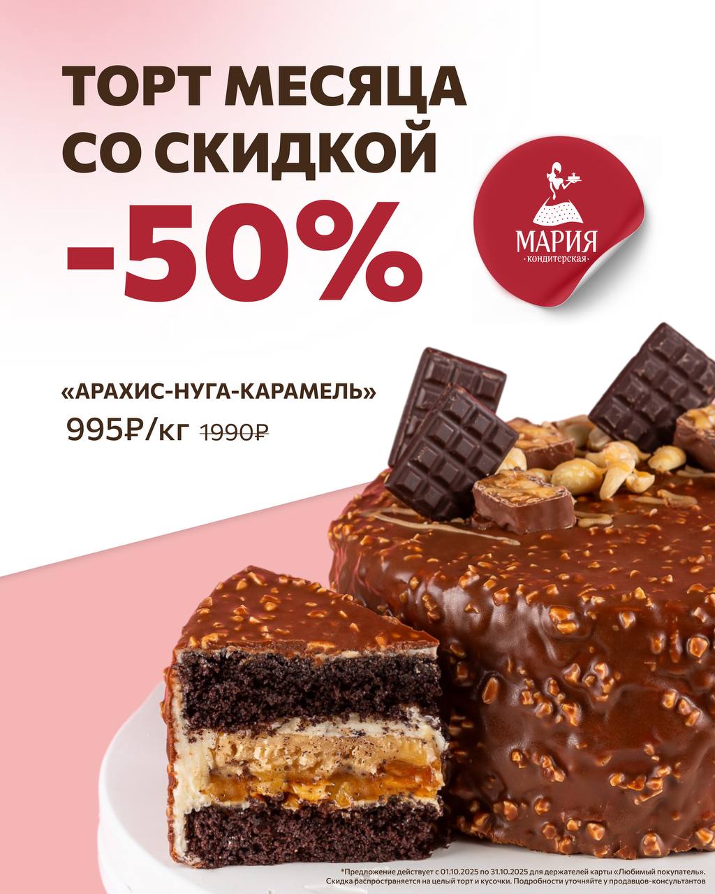 Осень — это повод порадовать себя и близких: весь месяц в «Марии» действуют специальные предложения и приятные скидки на любимые торты, десерты и выпечку. Листайте карусель!