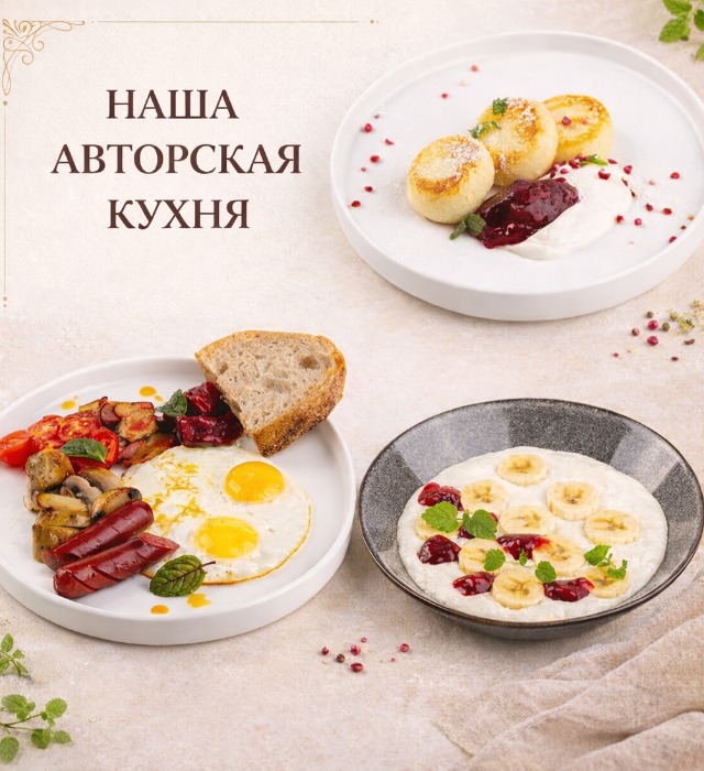 Яичницы, каши, салаты, супы, горячие блюда — всё из свежих ингредиентов и с той же заботой, с какой мы создаём наши десерты. Приходите не только за сладким, но и за полноценным приёмом пищи в уютной атмосфере!