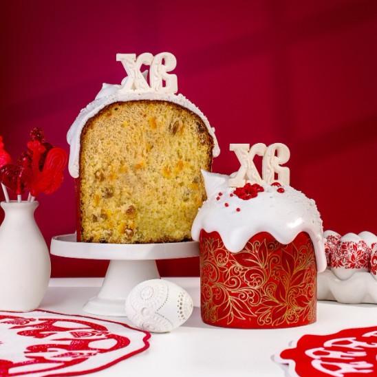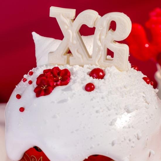 Состав: Мука в/с, масло сливочное, яйцо, сахар-песок, дрожжи прессованные, соль пищевая, апельсиновые цукаты, изюм/ помадка сахарная, меренги, драже, глазурь.
