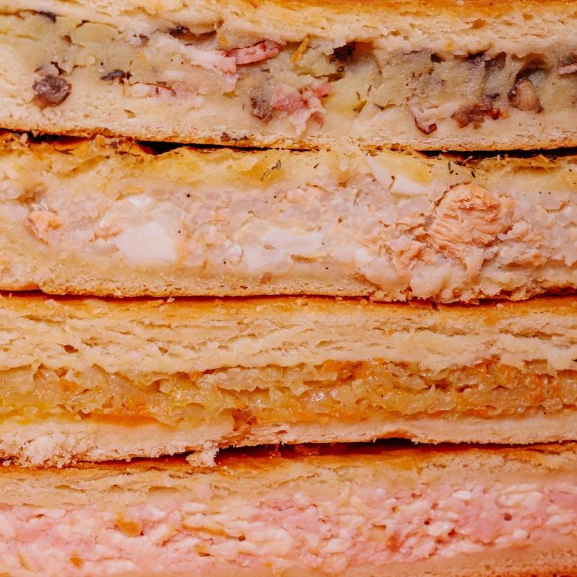 Состав: Мука в/с, дрожжи, масло, яйцо 1с, соль, сахар, молоко/ рис, лук, яйцо, горбуша с/м, перец черный молотый, прованские травы.